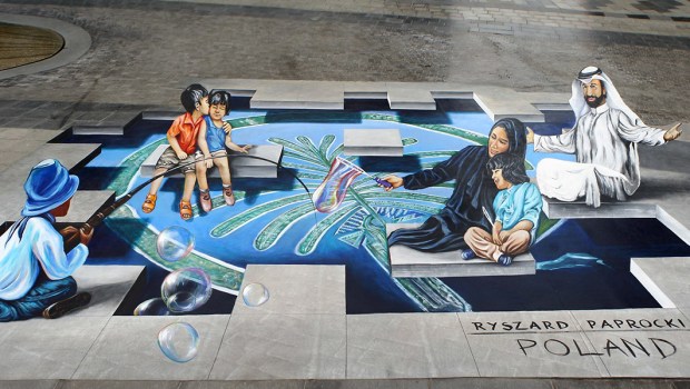Polak został zaproszony na drugą edycję Dubai Canvas 3D Art Award – konkursu dla artystów tworzących malowidła w 3D. Nie chodzi tu jednak o realne tworzenie obrazu w trzech wymiarach, lecz posługiwanie się złudzeniem optycznym, dzięki któremu patrząc z odpowiedniej perspektywy wydaje się, że nie stoimy na chodniku, tylko na gzymsie wieżowca. Tak jak tu: