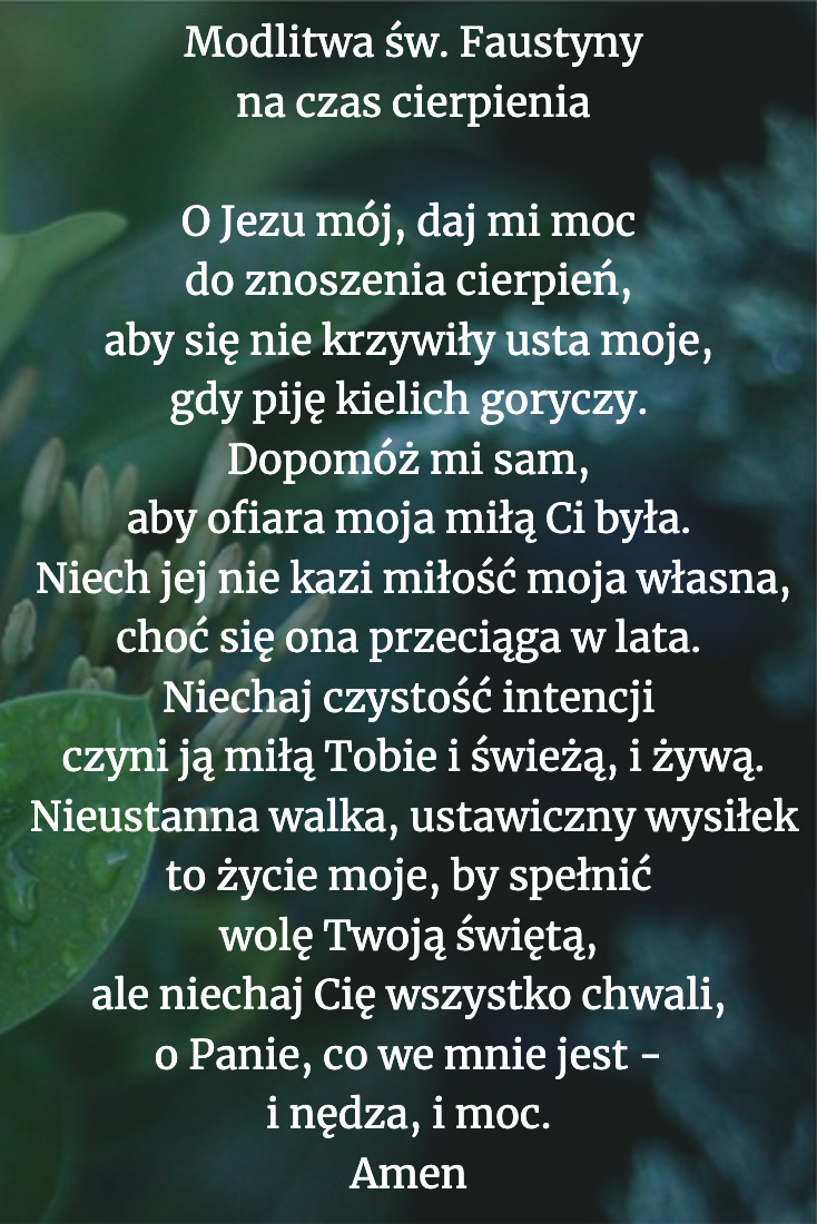 „Niechaj Cię wszystko chwali, o Panie, co we mnie jest – i nędza, i moc” – modlitwa św. Faustyny na czas cierpienia.