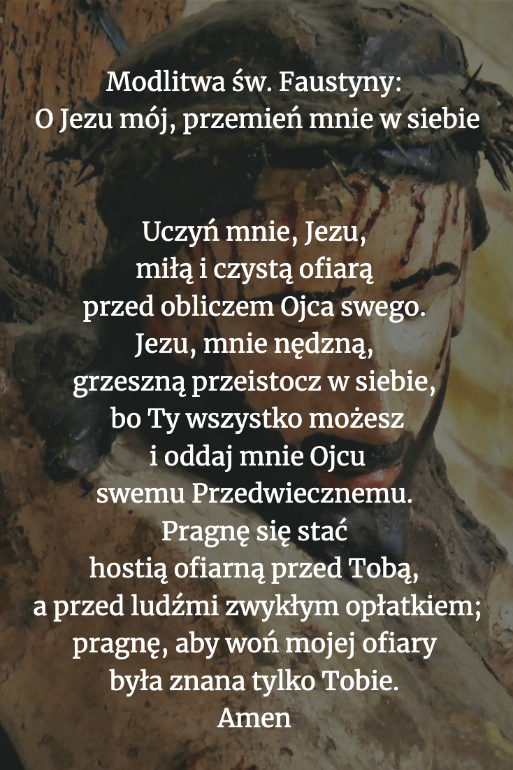 „Uczyń mnie, Jezu, miłą i czystą ofiarą przed obliczem Ojca swego”. Modlitwa św. Faustyny.
