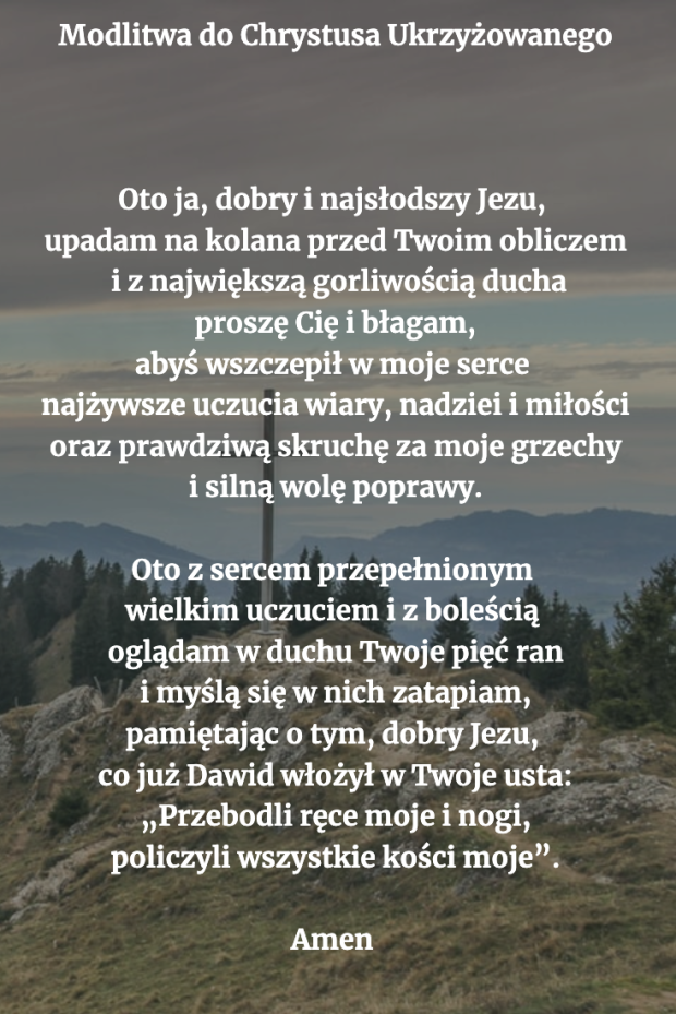 „Proszę Cię i błagam, abyś wszczepił w moje serce najżywsze uczucia wiary, nadziei i miłości”. Modlitwa do Chrystusa Ukrzyżowanego.