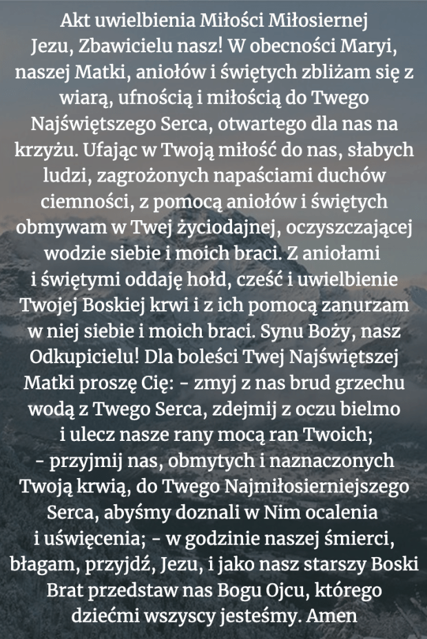 „Zmyj z nas brud grzechu wodą z Twego serca”. Akt uwielbienia Miłości Miłosiernej.