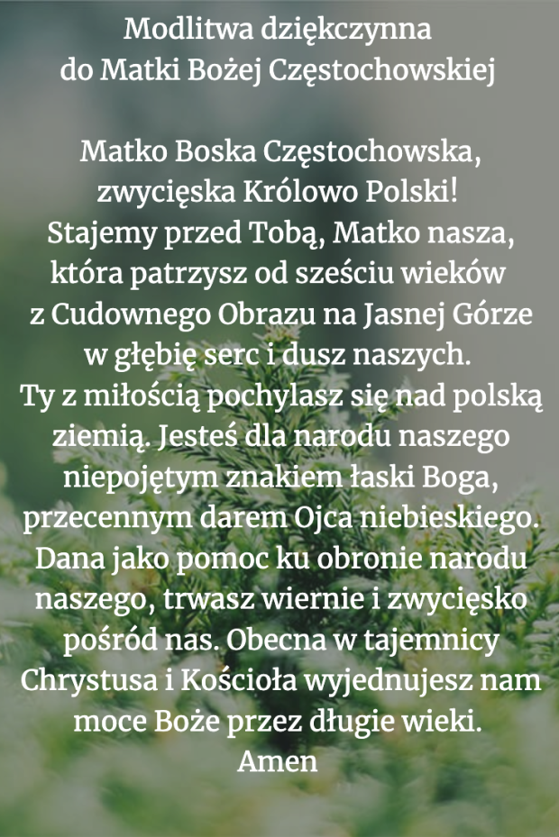 „Jesteś dla narodu naszego niepojętym znakiem łaski Boga”. Modlitwa dziękczynna do Matki Bożej Częstochowskiej.