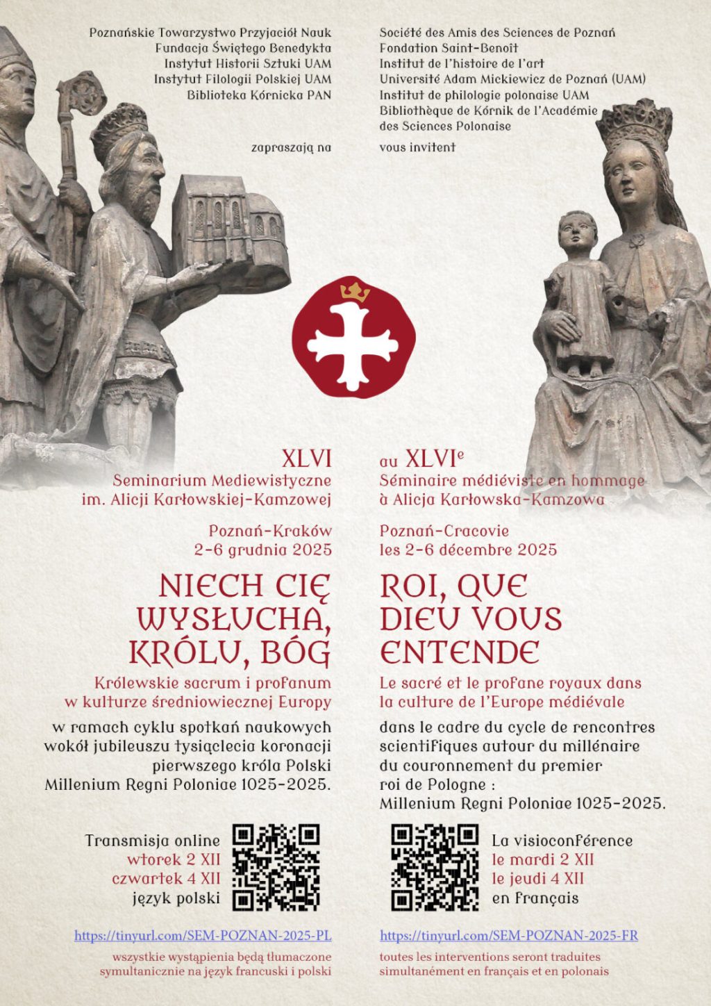 Obrady zorganizowane są wspólnie przez Fundację Świętego Benedykta, Poznańskie Towarzystwo Przyjaciół Nauk, Uniwersytet im. Adama Mickiewicza w Poznaniu oraz Bibliotekę Kórnicką PAN. Seminarium prowadzone jest w dwóch językach — polskim i francuskim — ze wspólnym tłumaczeniem symultanicznym, co podkreśla jego rangę w europejskiej i światowej nauce.