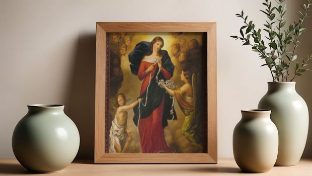 W prezencie ślubnym dostała obraz Matki Bożej Rozwiązującej Węzły. Ten obraz. Wisi w centralnym punkcie jej domu jako przypomnienie, że nie wszystko da się rozwiązać samemu. Że cierpliwość też jest formą miłości. Że Bóg bardzo często działa przez ręce innych ludzi.